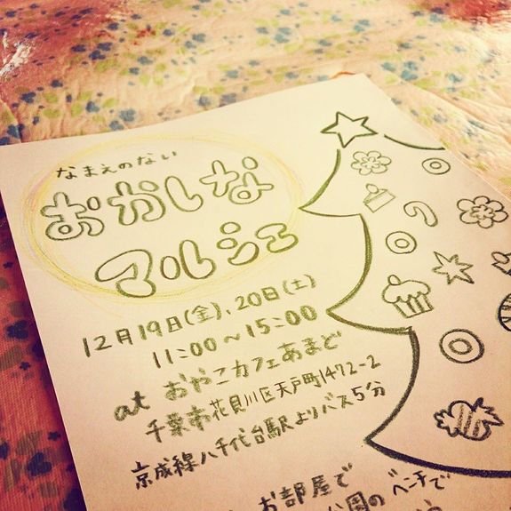さて、今度の金曜日と土曜日は、今回プレーパークを開催する天戸公園前にてなまえのない「おかしなマルシェ」開催です。
