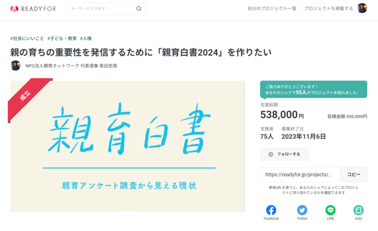 親育白書2024を制作するためにクラウドファンディングを実施し、