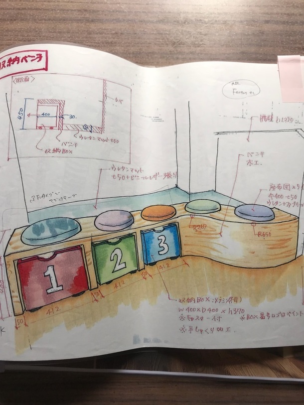 特にこだわったところは左上のハイハイ&つかまり立ち期のお子様向けのスペースです。