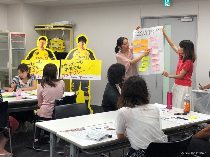 たたいたり、怒鳴ったりすると子どもにどのような影響があるのか、そうしないためにはどうしたらいいのかといった子育てのヒントを、柏レイソルのファン、地域の方や子どもを指導するコーチの参加を得て、ともに考える対面/オンラインのワークショップを開催しています。