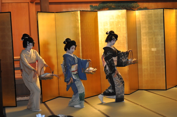 (お座敷では芸者衆のおもてなし、立居振舞を体験します。)