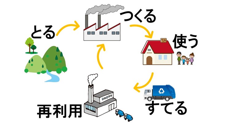地球の限りある天然資源の採取をできるだけ減らして、効率的に利用することで廃棄されるものを最小限に抑えるとともに、資源として扱えるものは再利用を行って、資源を持続可能(サステナビリティ)な形で循環させながら利用していく社会のことです。