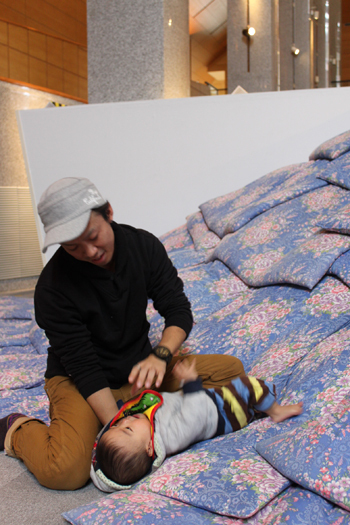 遊びに来てくれた子どもたちは、どの子も笑顔に満ちあふれていました。そしてその子どもたちの笑顔を見て、私たち大人の気持ちも暖かくなったことは確かです。みんなふとん山が大好きになり、毎週美術館を訪れてくれた親子、ご家族がたくさんいました。汗だくになっていたのは、子どもだけではなかったのです。来た人みんなを巻き込む不思議な力が、この作品には宿っているのだとあらためて思いました。