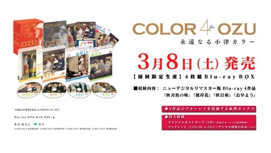 『秋日和』、『お早よう』のブルーレイ、『秋刀魚の味』、『彼岸花』、『秋日和』、『お早よう』の4作品のBOXも3月8日に発売されます。今回のデジタル修復のビフォーアフターの映像はこちらでご覧ください!
