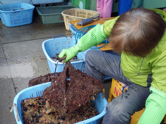 今日の活動は、昨日に引き続き広田町の漁港でホタテ養殖のお手伝いでした。