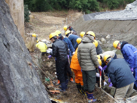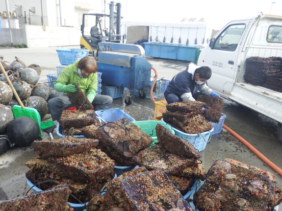 12月12日の活動は気仙町の龍泉寺の側溝上げ(遺留品捜索)と広田町のホタテ養殖のお手伝いでした。