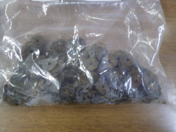 龍泉寺の側溝から貯金箱が見付かり、五円玉がぎっしり入っていました。
