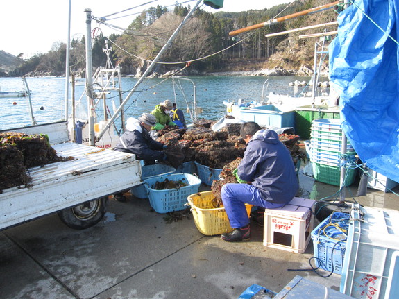 12月19日の活動は広田町のホタテ養殖のお手伝い。人手不足の