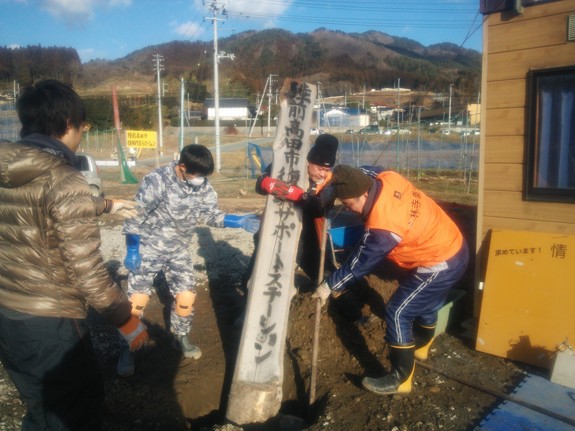 トステーション内には気仙町から持ってきたサポートステーション看板