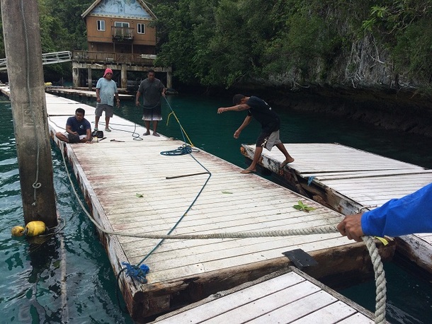 パラオ人スタッフ総出演での大掛かりな作業でした。
