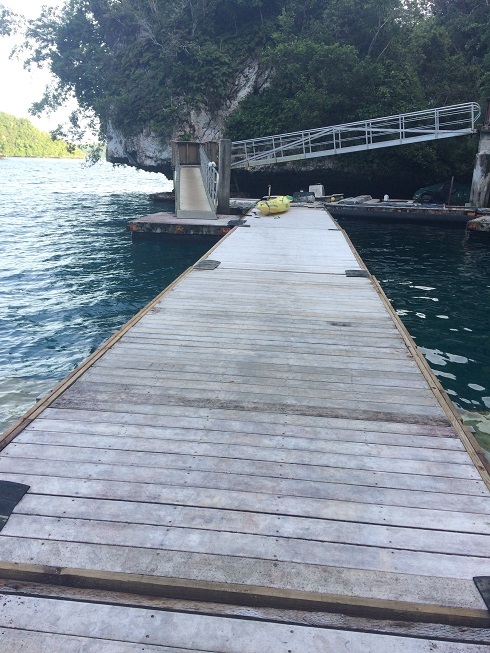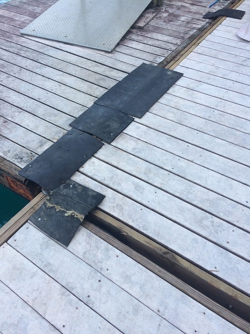 このスロープ付近の桟橋は、特に経年劣化も進んでおり、桟橋の木枠が朽ちて欠けているものもありました。