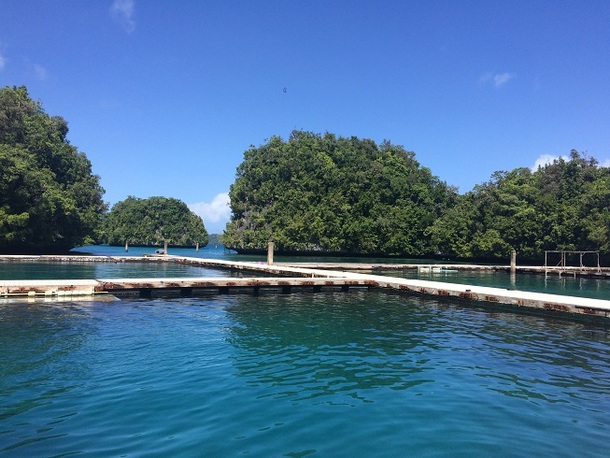 通常私たちが使用している桟橋のパネル部分は、再生プラスチックで作られているのですが、この桟橋だけは木材で出来ています。(聞くところによると、かれこれ十数年ほど前にパラオで撮影されていたSURVIVORという番組で使用されていた桟橋を譲り受けたそうです…!あの、かの有名な無人島サバイバルの番組です(゚д゚)!)