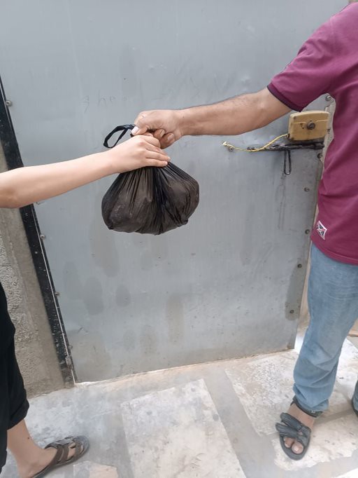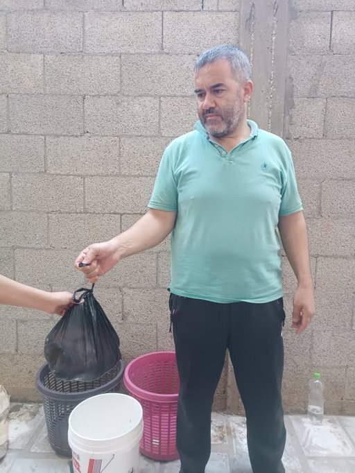鶏肉1羽で3~4人分になるそうで、家庭の人数に応じて2~3羽分の鶏肉が約450世帯に配られました。ほとんどはアル・ブレイジ地区に住む困窮家庭ですが、少数ながら近隣のマガージ地区とヌセイラット地区の家庭にも配られました。経済的に厳しい家庭に加えて、避難してきた人々を受け入れている家庭も対象に含められたそうです。