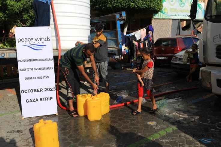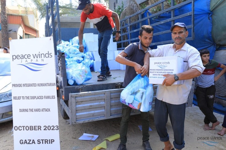 ピースウィンズは、これまでに、ガザ地区内で調達した食料、水、衛生用品、温かい食べ物等を約1,060世帯、約6,900人に提供してきました。