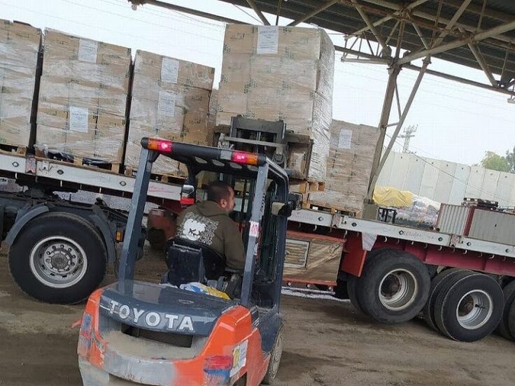 トラックで2,000世帯分の支援物資をガザ地区内へ
