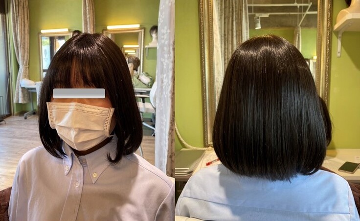 ご希望に合うウィッグを送付後、ご紹介した美容院でセットされた画像を頂きました。