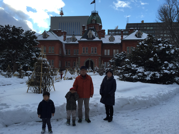 今回は、お正月に帰省できなかった事もあり、こどもたちのおじいちゃんとおばあちゃんに避難先の北海道に来ていただきました。