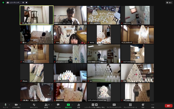 ●オンラインインスタレーションに参加(Zoom):紙コップ320個