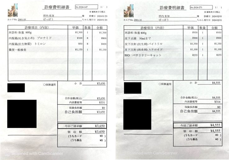 ページ上に掲載している診断書や診療明細書などの資料は全て動物病院から掲載の許諾を得ております。