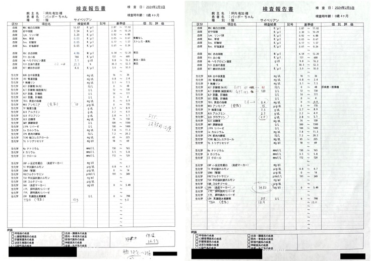 さすがに、早急に血液検査をして原因を突き止めなくてはならないと判断されました。それでもあまりに身体が小さいため、半日入院をしながら、ゆっくりと時間をかけての血液採取になりました。