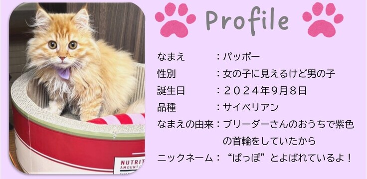 昨年12月に最愛の猫を15歳で看取った後、また猫を迎えたいと思い、今年1月10日に半里親としてサイベリアンのパッポーを譲り受けました。