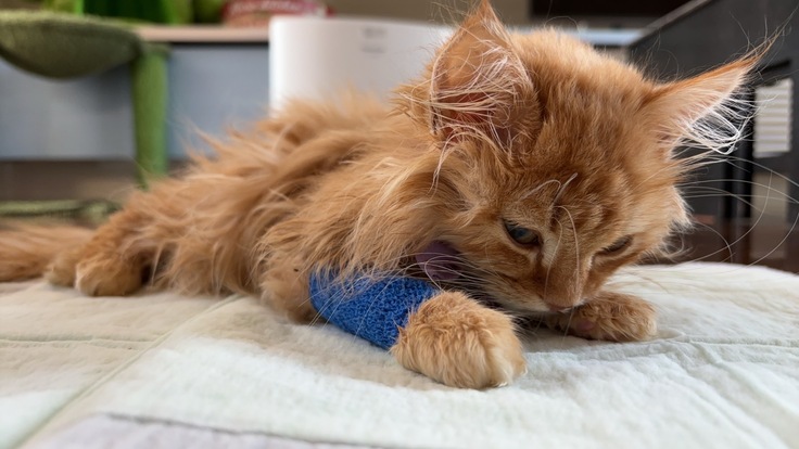 退院後は自ら餌を食べ、よく遊ぶようになりました。通院は週に1度です。