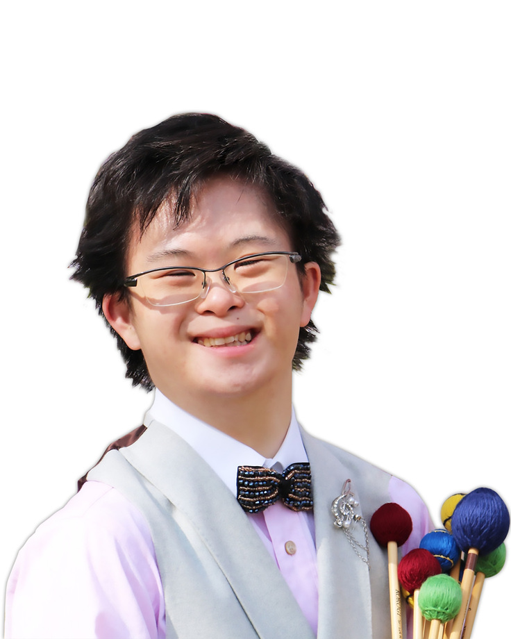ダウン症という知的障害。10歳でマリンバを始める。楽譜が読めないため少しづつ覚え、1年くらいかけて1曲を完成させる。現在は介護職として働き、地域ボランティアに参加している。