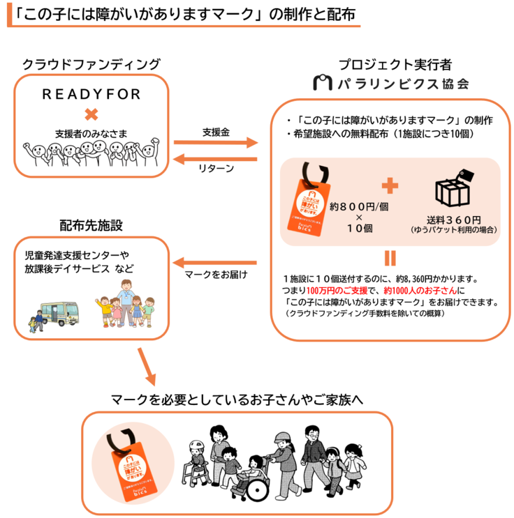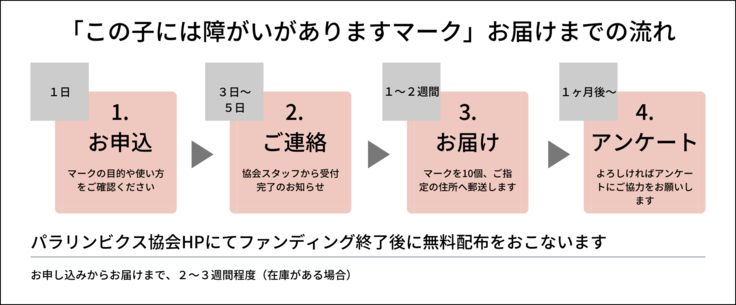 また、少しでも早くマークを手にされたい方や、お近くにいる必要な方にご自身で配布したい方へもできる限り多くお届けできるよう「いちおしリターン!『この子には障がいがありますマーク』を10個配って応援!プラン」の在庫数追加を予定しています。