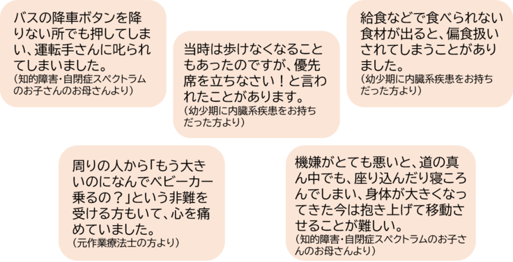 実際私の周りでも、外見からは分かりにくい障がいがあるお子さんの親御さんや、ご自身がそのような障がいをお持ちの方のこんな声がありました。