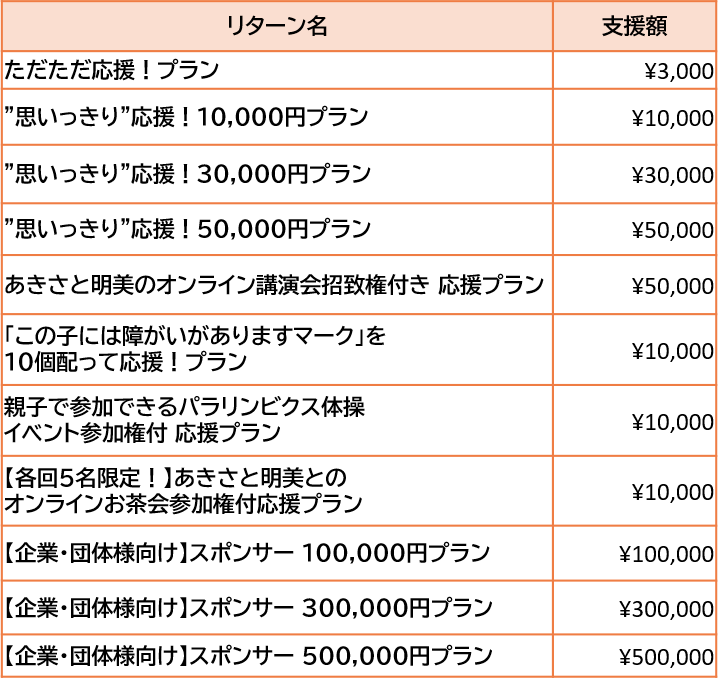 ◉パラリンビクス協会ホームページに「クラウドファンディング1万円サポーター」としてお名前を掲載いたします 。以下の《お名前掲載について》もご確認ください。