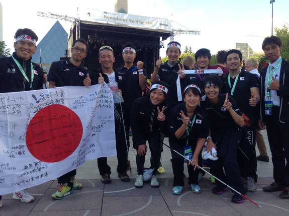 (レース2日前のオープニングパレード。エドモントンの街中を「チームJAPAN」の一員として歩きました!!)
