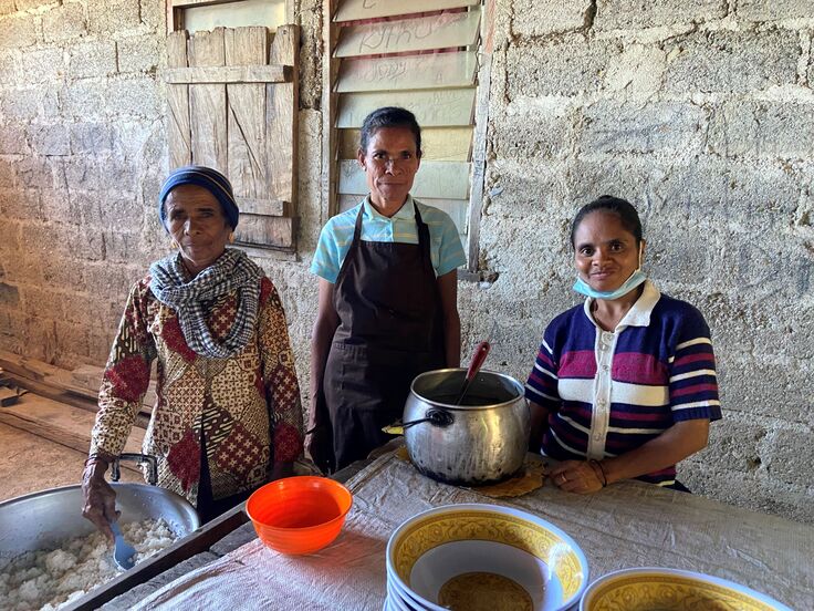 皆さん、こんにちは。東ティモール事務所の桑原です。現在実施している料理教室には、各校2~3名の調理担当者の方々が参加しています。今日は、その中から2人の担当者に料理教室の感想を聞いてみました。