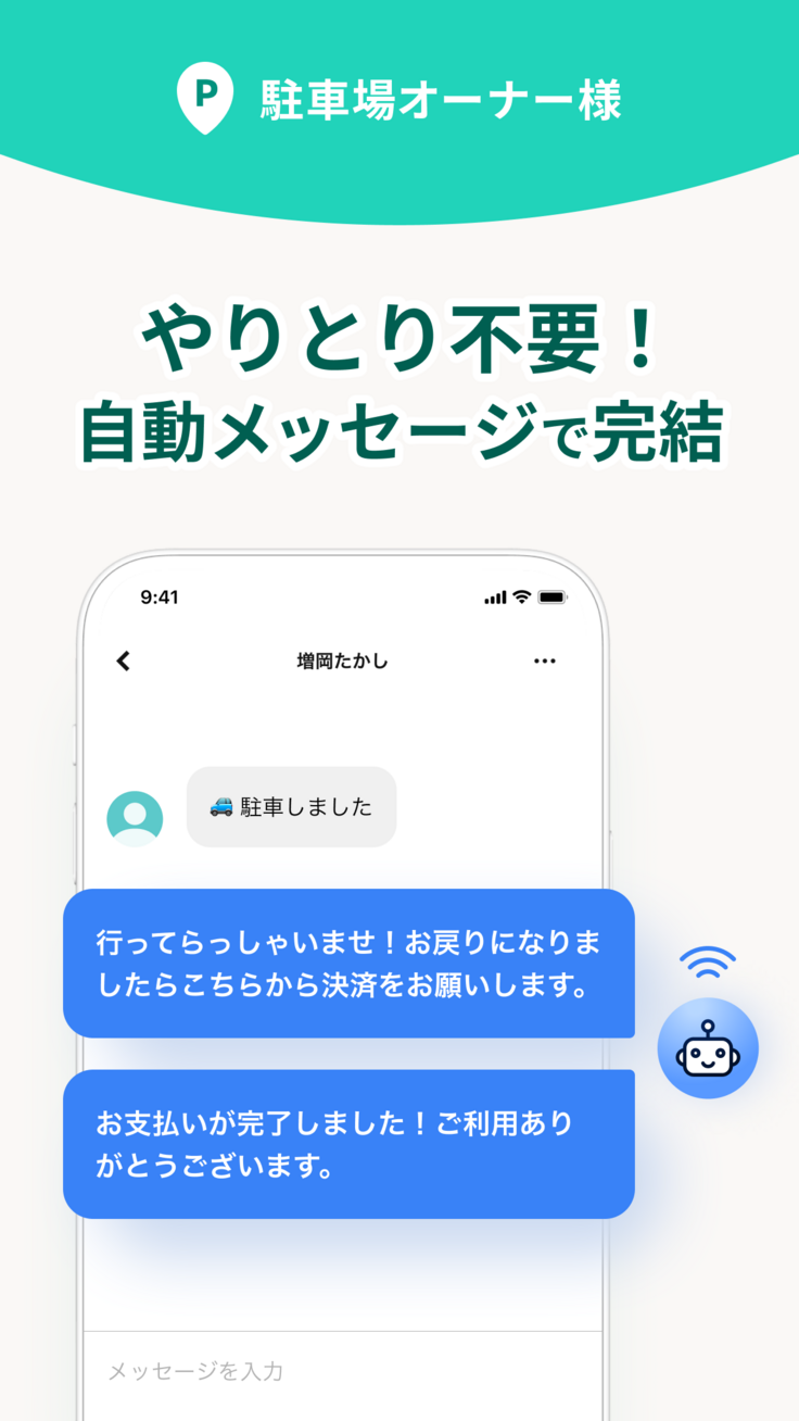 そして、駐車から決済までのやり取りは全て自動メッセージで完了するので基本やり取りは不要です。必要に応じて自由にメッセージを送ることも可能です。