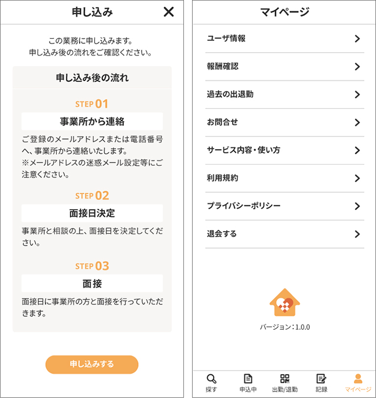 ◆ヘルパー用(スマホアプリ):申込手順、マイページ