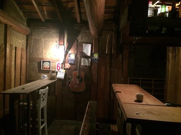 (二階に廃材でつくったイングリッシュパブ。材料費は釘、合板3000円ほど)