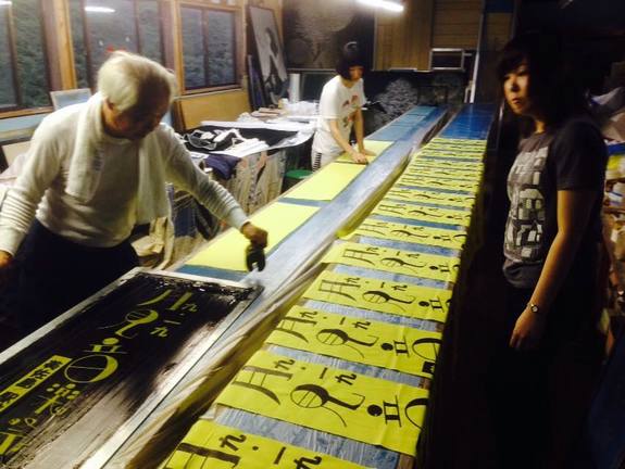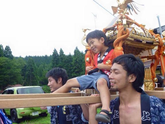 (近所の職人さんに助けていただきお祭りの旗をつくりました)