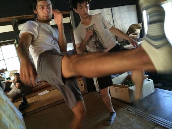 (DIY合宿にきてくれた人と朝のトレーニングです)