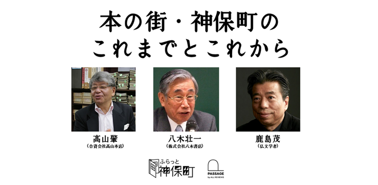 八木壮一(株式会社八木書店 代表取締役社長)、髙山肇(合資会社髙山本店 代表社員)、鹿島茂(仏文学者)