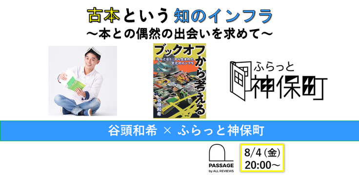 由井緑郎(ALL REVIEWSプロデューサー)、かごとも(ALL REVIEWS友の会/ALL REVIEWS運営チームメンバー)、中野健太郎(「ふらっと神保町」)、島倉雄哉(「ふらっと神保町」)