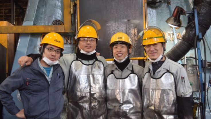 また素材として高価なだけでなく、引張強度が高く、熱伝導率が高いため加工が困難であり、切削加工などで塊から製品を作り出すと物凄く高価になってしまいます。しかし、旭鉄工では、自社と強みである熱間鍛造技術を用いることで、これだけの質量を持ったチタン製品を比較的リーズナブルに作ることに成功しました。