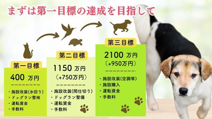 そのため、プロジェクトを押し進めていくために最低限必要な金額の400万円を第一目標に設定させていただいております。