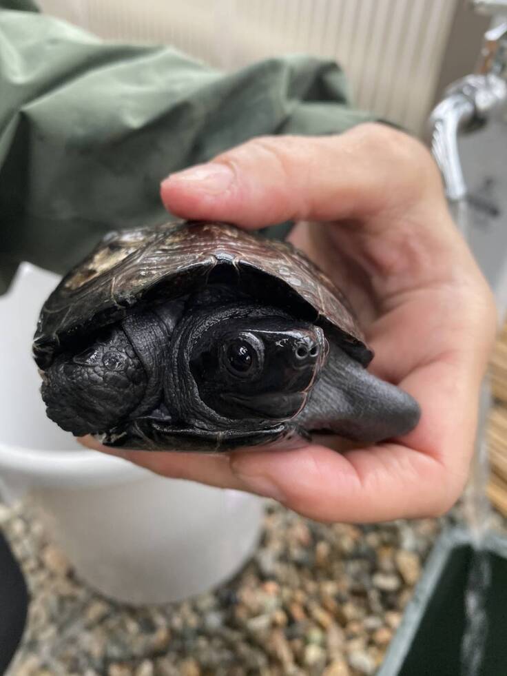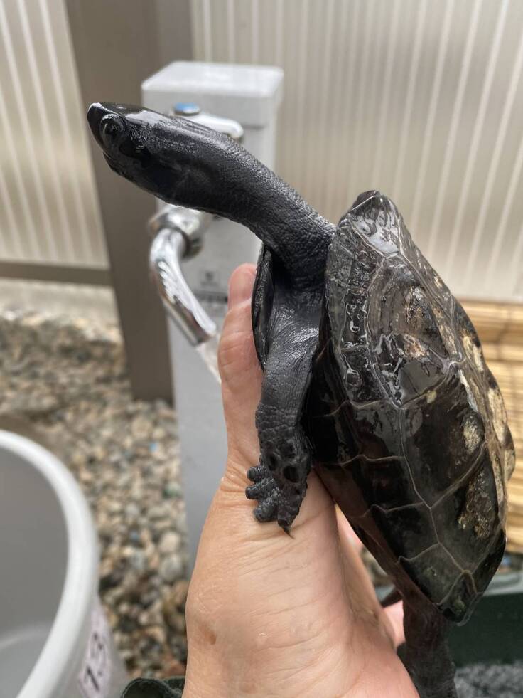 現在、水棲亀が多くおりますが、ほとんどは富山県内の警察署から保管期間を経て当団体に譲渡されました。体長30cm以上の陸亀の保護もあります。またオオトカゲなど体長100cm近くの大型爬虫類の保護もあり爬虫類等を専門となさるお店や飼養経験のあるかたとの連携はとても重要で毎々助けていただいております。