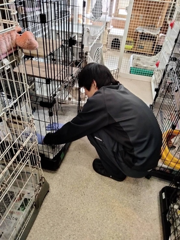 ピースアニマルズホームの職員さんが保護していた三毛猫(つくよちゃん)の里親に応募したのがきっかけで、ピースアニマルズホームとのつながりができました。しばらくはつくよちゃんのお世話でかかりっきりでしたが、譲渡していただいてから1年ほど経って落ち着いたタイミングで、ピースアニマルズホームに恩返しができればと思い、ボランティアを志願しました。