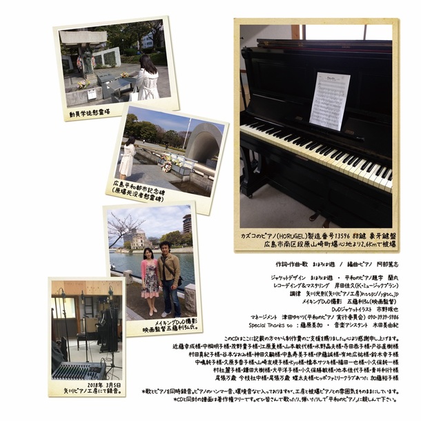 尚、1万円以上ご支援をくださった方には「平和のピアノ」のCDジャケットにお名前を記載させていただいております。