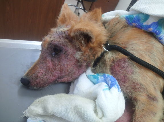 見るも無残な状態でした。現在、隔離病棟で治療中です。)