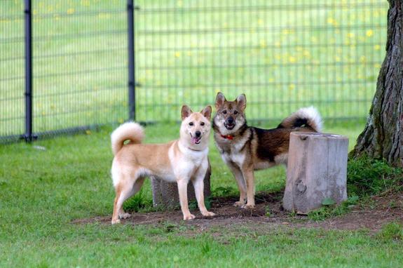 (共に愛護センターから引取られた杏「右」とリーベ「左」。