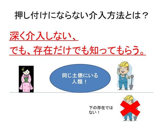 かわいそうなどでの支援をしない。彼らも同じ人間であり、彼らの価値観がある事を知ってもらう。上でも下でもなく、同じ土俵にいる人類である事を知ってほしい。では、どうすれば、彼ら自身の存在を示しつつ、共通性を示すことができるのでしょうか?