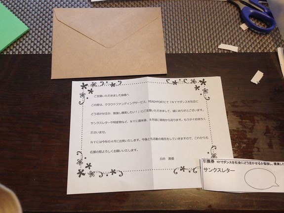 サンクスレター(NYの報告的な感じで書きます!一枚一枚、手書きで書かせていただきます!)
