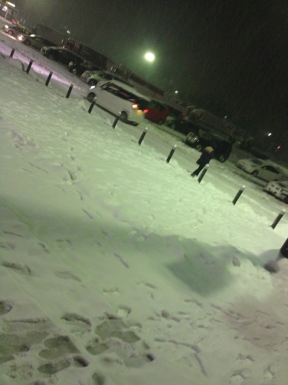 PAに到着し、外を見てまた驚愕しました。駐車場が真っ白で、さらさらとした雪があたり一面につもっています!駐車場の下の線がきれいに隠れているほどで、駐車も一苦労でした。東北にはいったらどうなってしまうんだろう…と不安がよぎります。