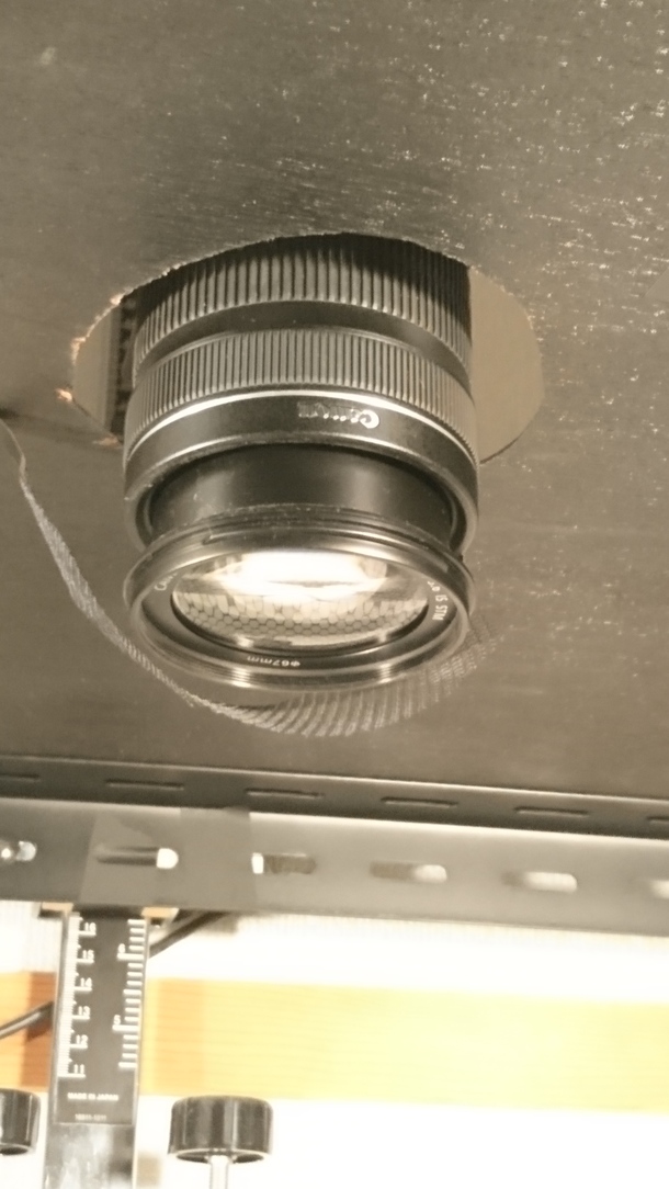 マルチ台の上部にセッティングされた一眼レフのカメラで撮影。
